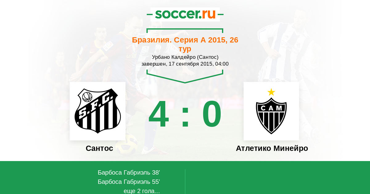 55' (2:0) Барбоса Габриэль (10) (Лукас Лима (20))