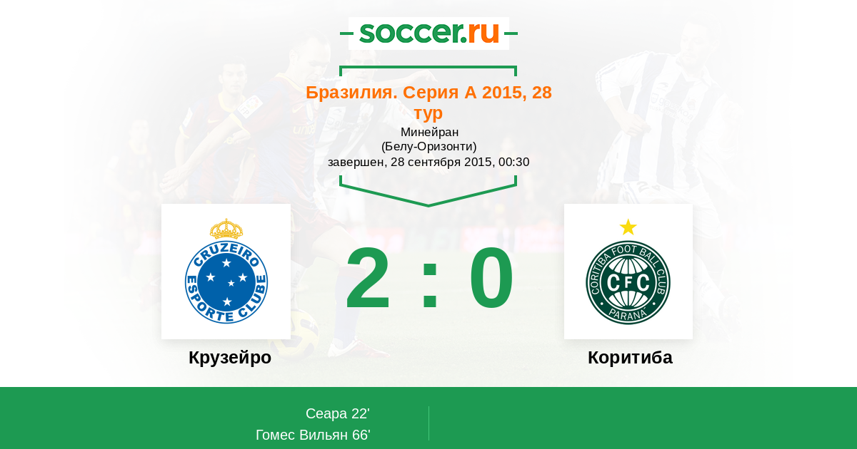 Протокол матча Крузейро против Коритиба