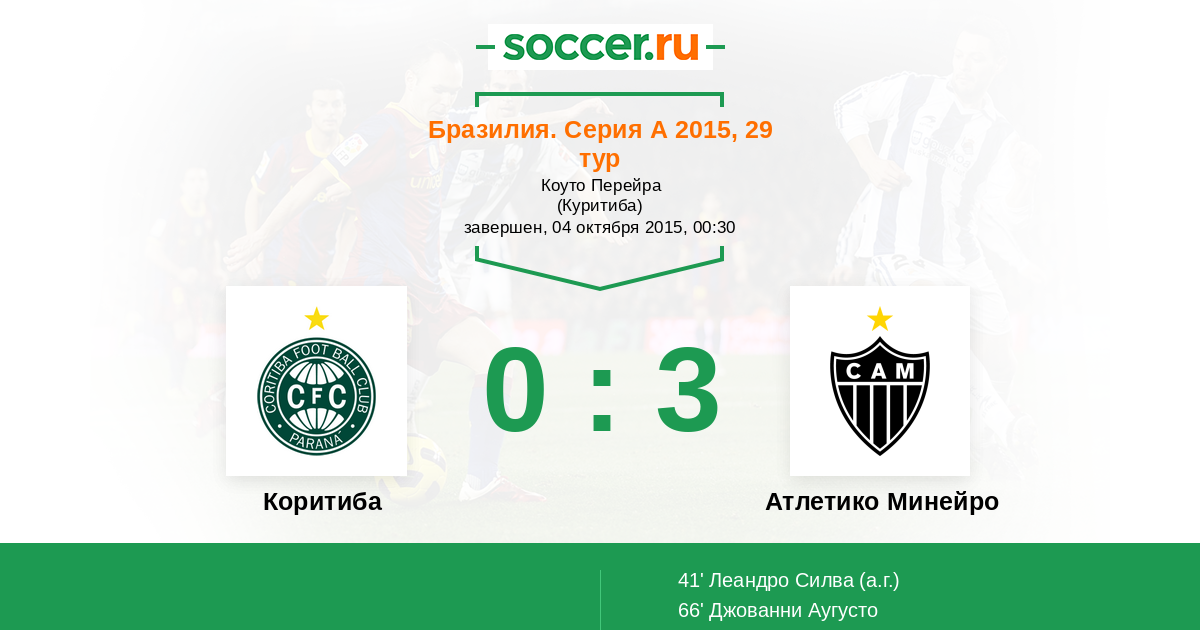 Протокол матча Коритиба против Атлетико Минейро