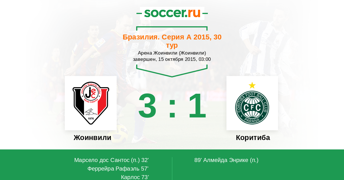 Протокол матча Жоинвили против Коритиба