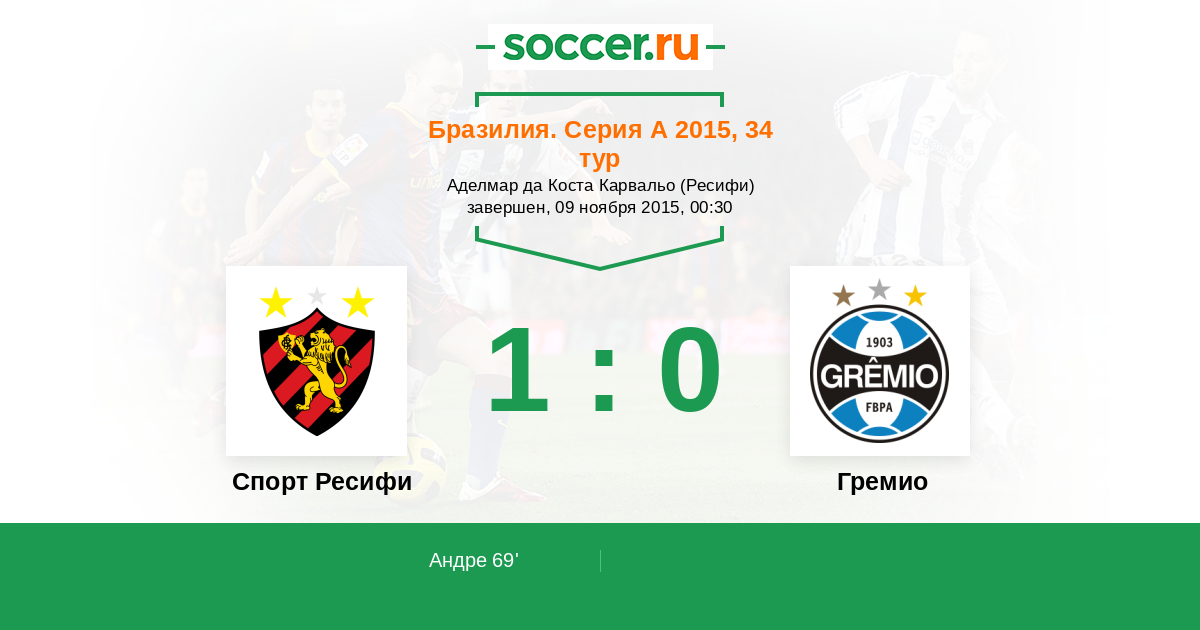 Протокол матча Спорт Ресифи против Гремио