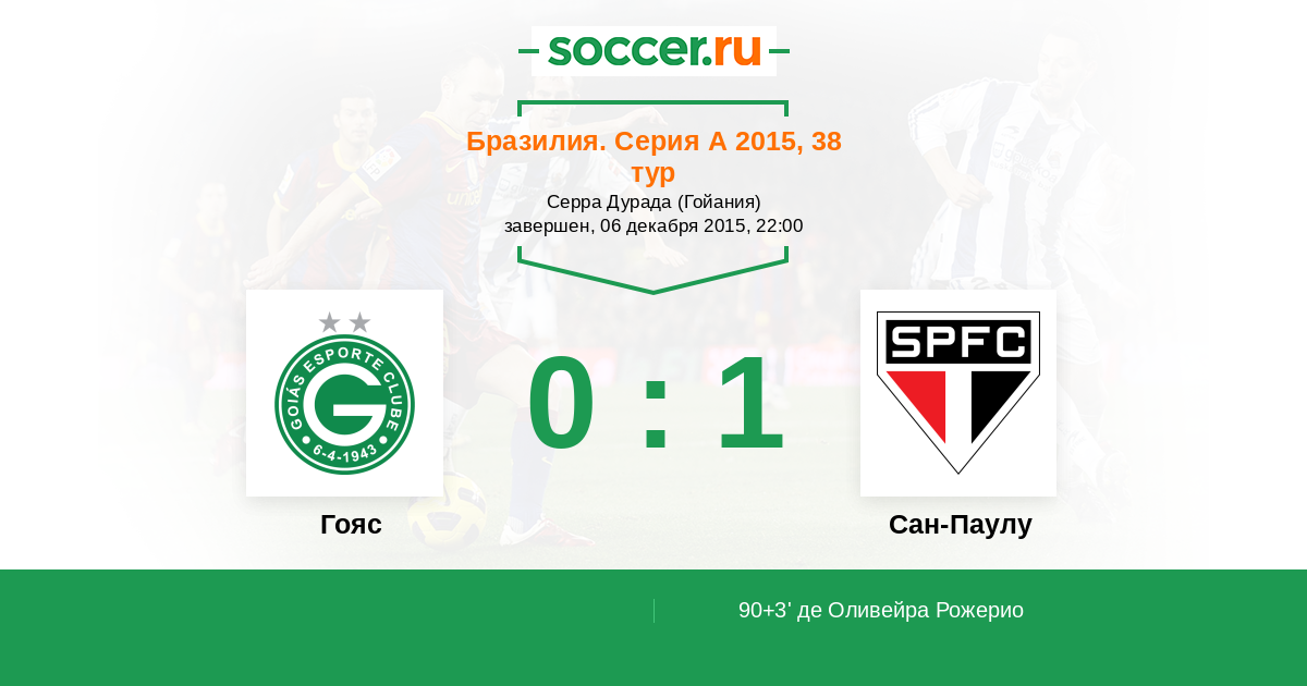 90+3' (0:1) де Оливейра Рожерио (17) (Гансо (10))