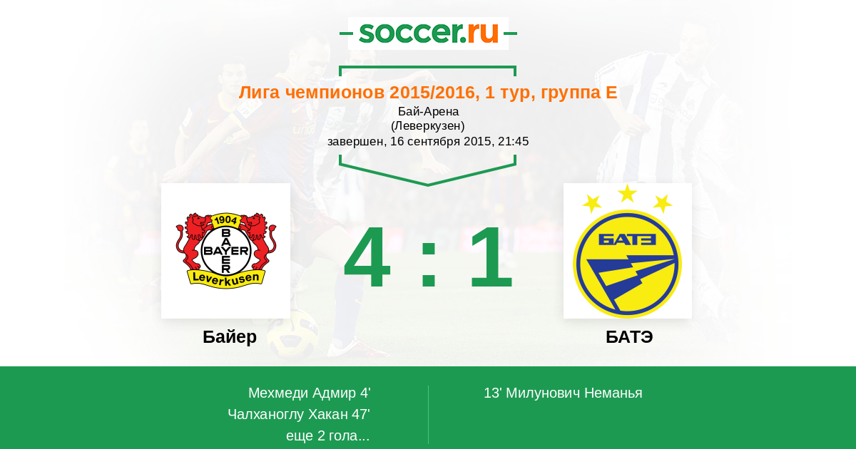 Протокол матча Байер против БАТЭ