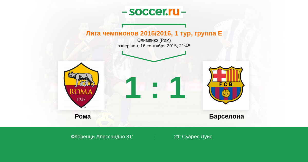 21' (0:1) Суарес Луис (9) (Ракитич Иван (4))