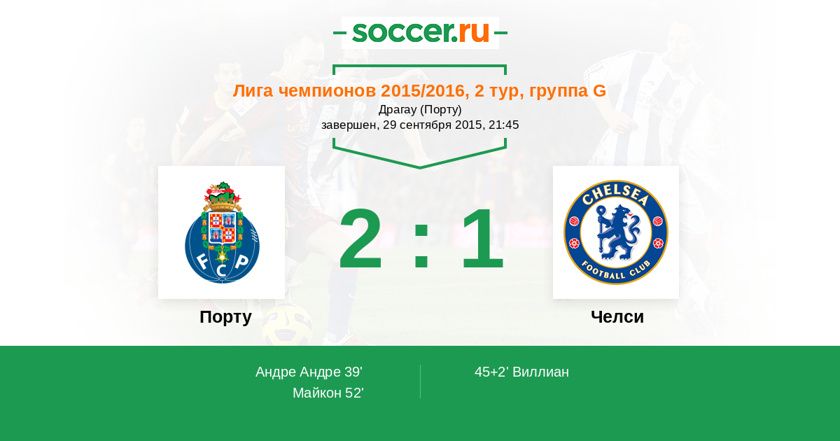 Протокол матча Порту против Челси