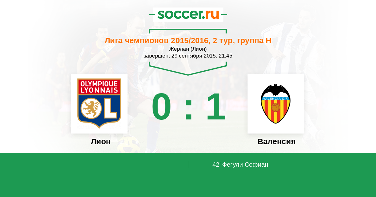 42' (0:1) Фегули Софиан (8) (Пьятти Пабло (11))