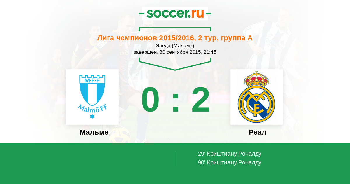 Протокол матча Мальме против Реал