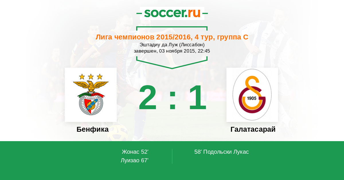 Протокол матча Бенфика против Галатасарай
