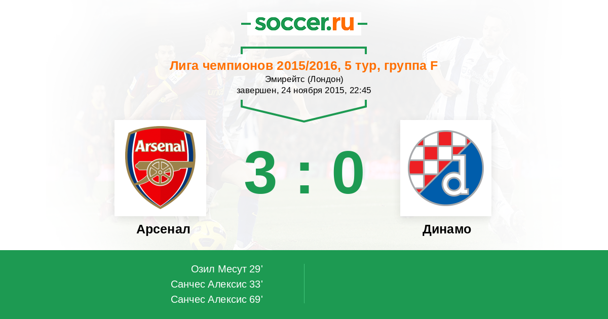 Протокол матча Арсенал против Динамо
