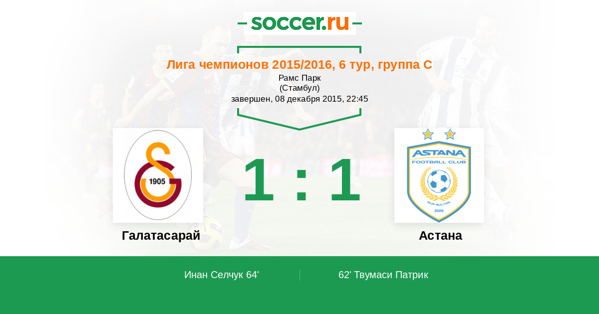 Протокол матча Галатасарай против Астана