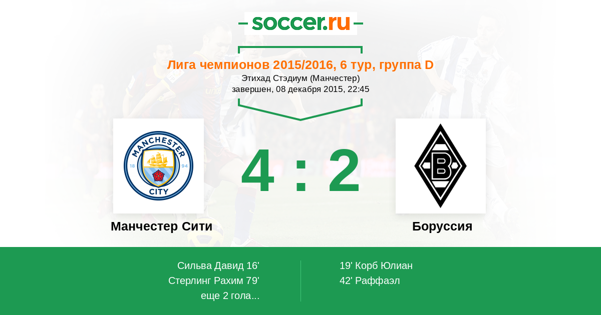 16' (1:0) Сильва Давид (21) (Стерлинг Рахим (7))
