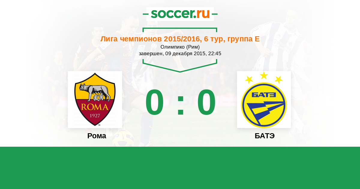 Протокол матча Рома против БАТЭ