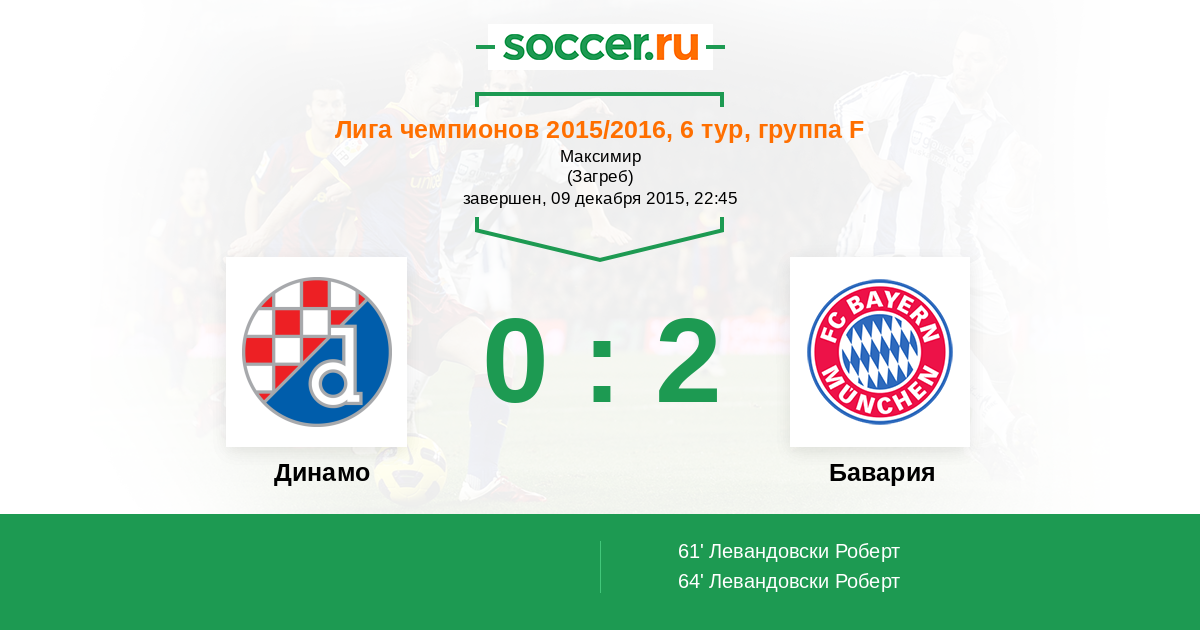 Протокол матча Динамо против Бавария