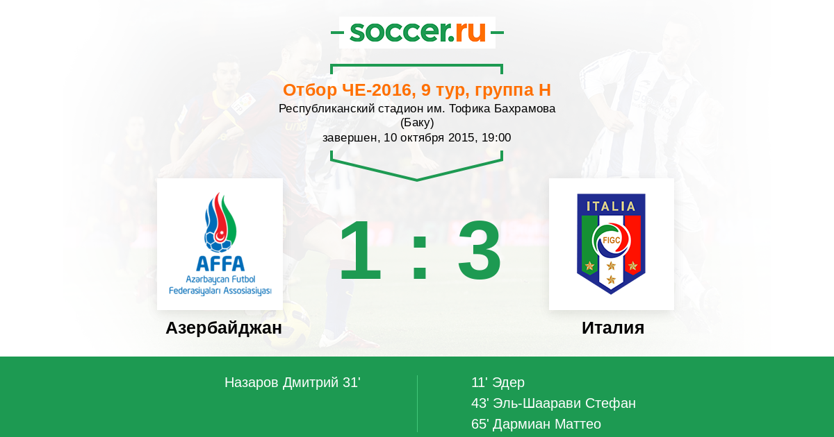 Протокол матча Азербайджан против Италия