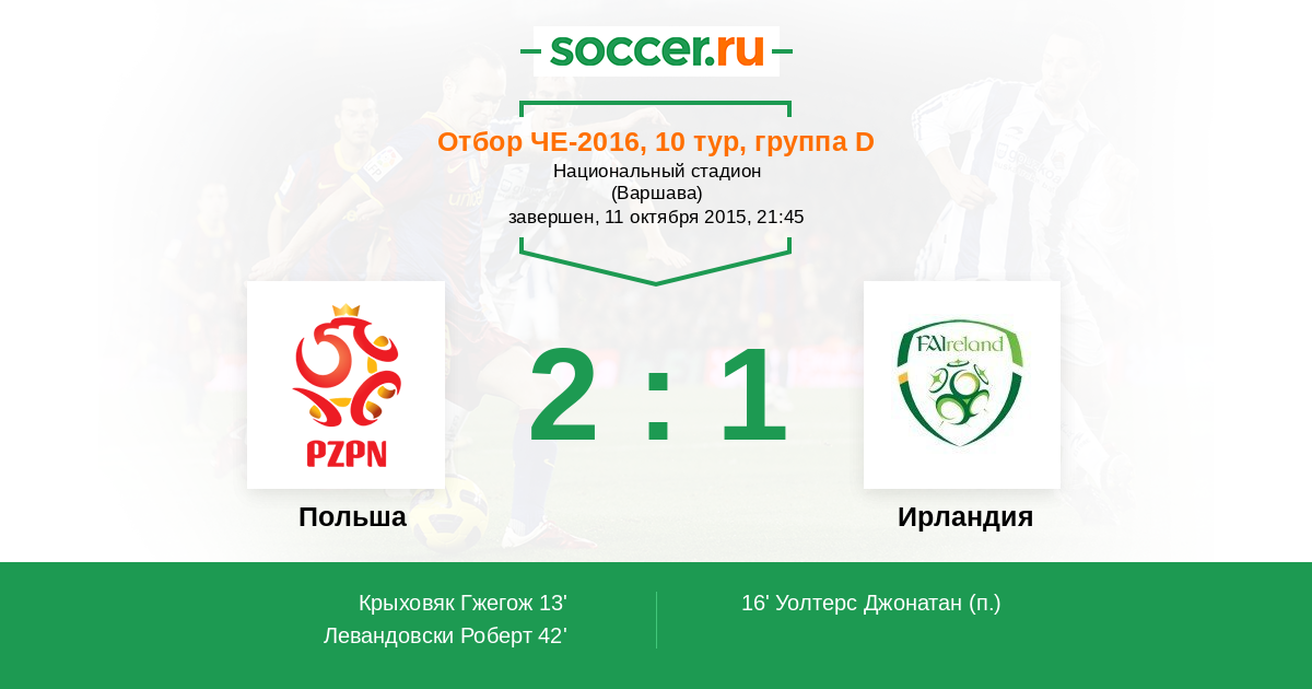Протокол матча Польша против Ирландия