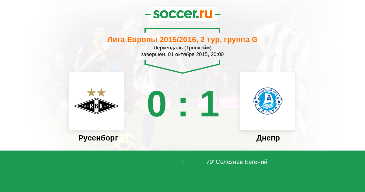Протокол матча Русенборг против Днепр