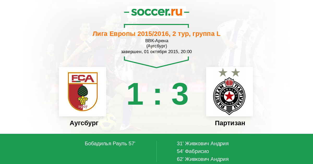 Протокол матча Аугсбург против Партизан