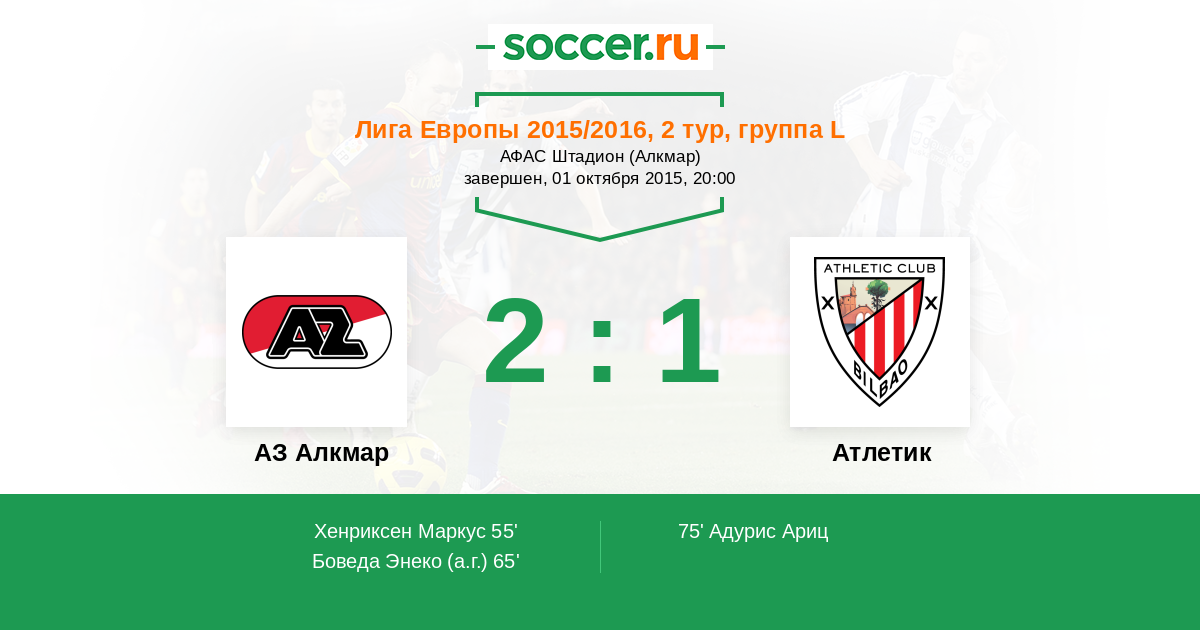Протокол матча АЗ Алкмар против Атлетик