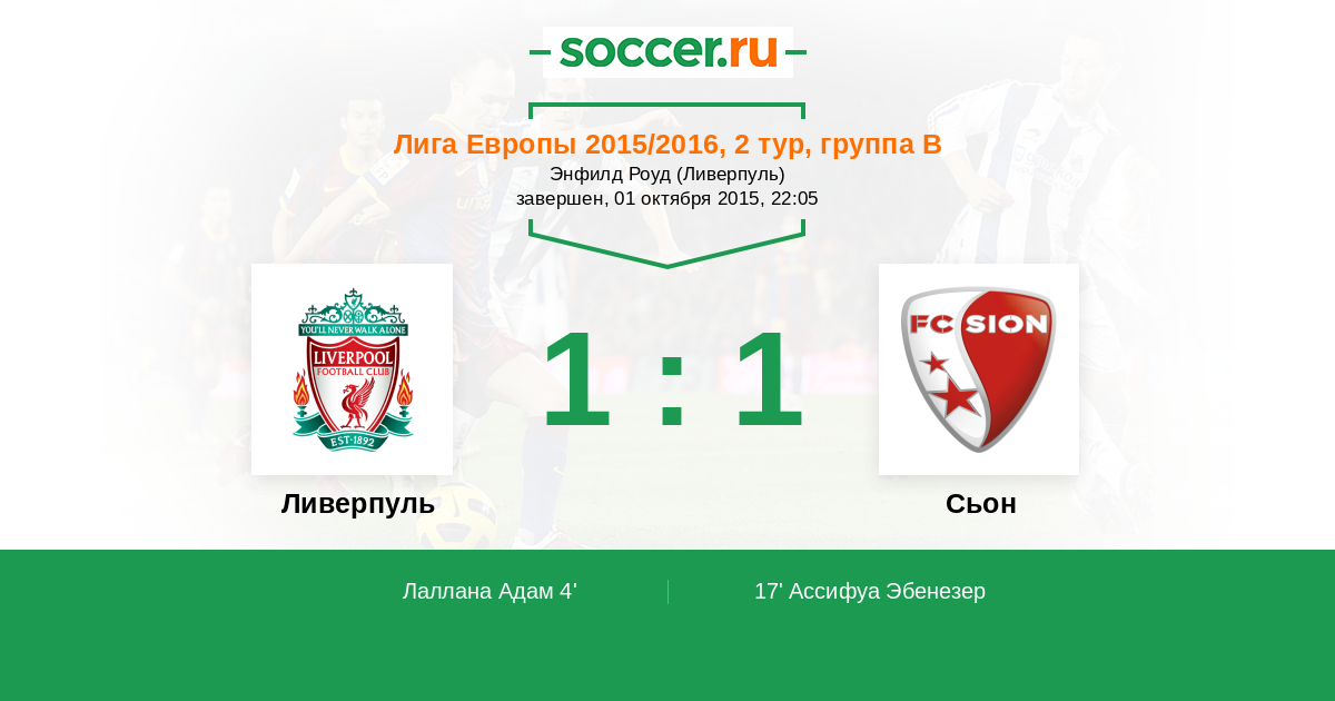 Протокол матча Ливерпуль против Сьон