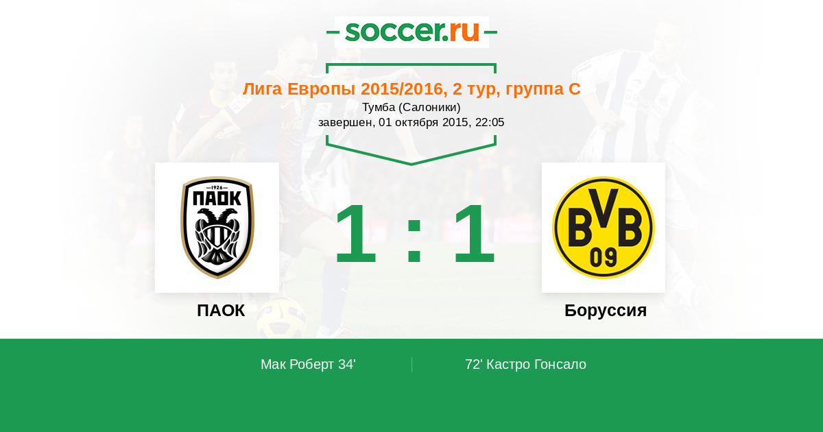 Протокол матча ПАОК против Боруссия