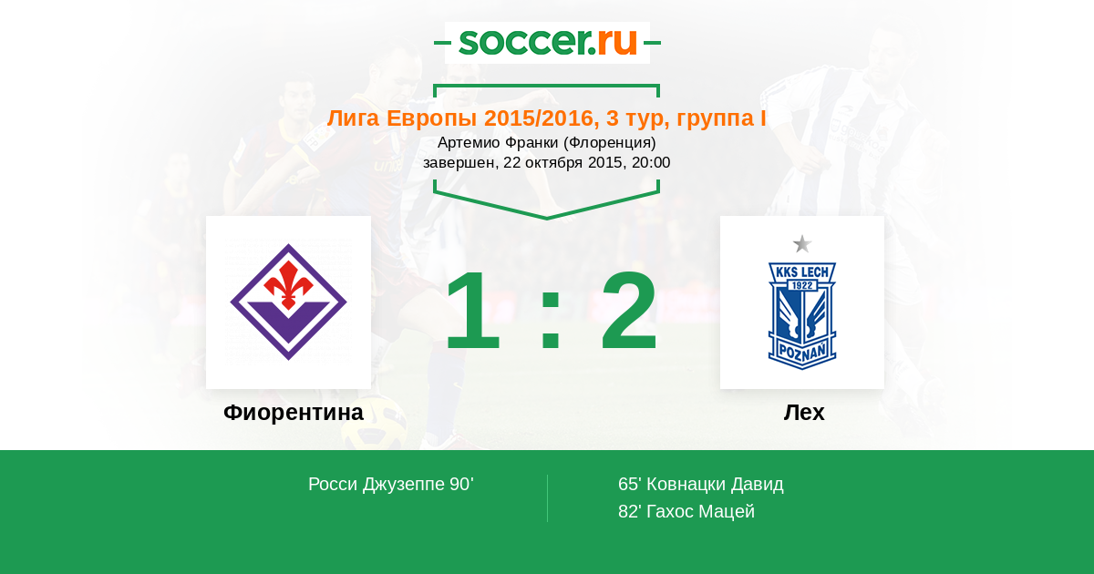 Протокол матча Фиорентина против Лех