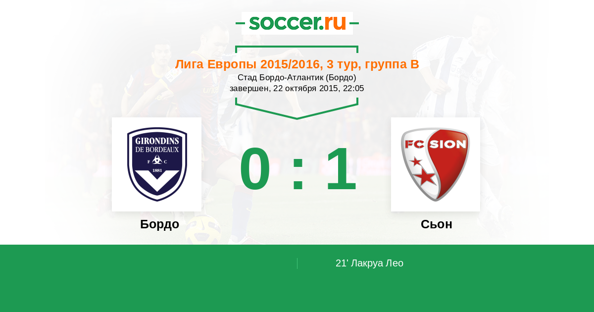 Протокол матча Бордо против Сьон