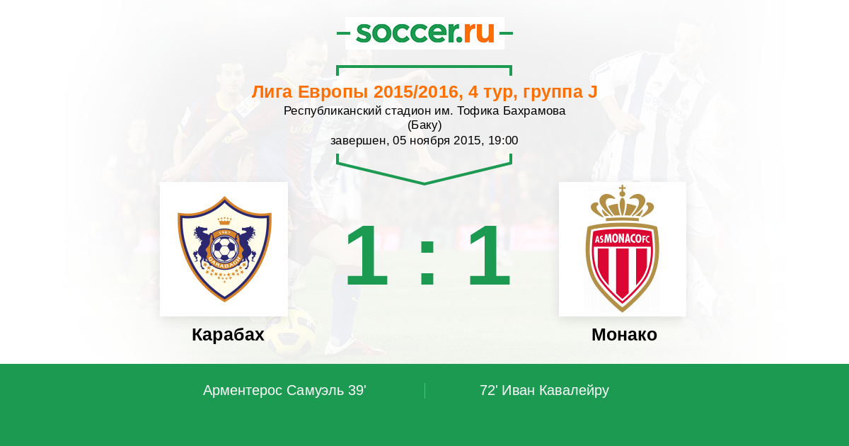 Протокол матча Карабах против Монако