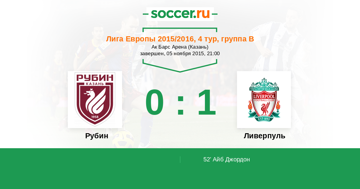 Протокол матча Рубин против Ливерпуль