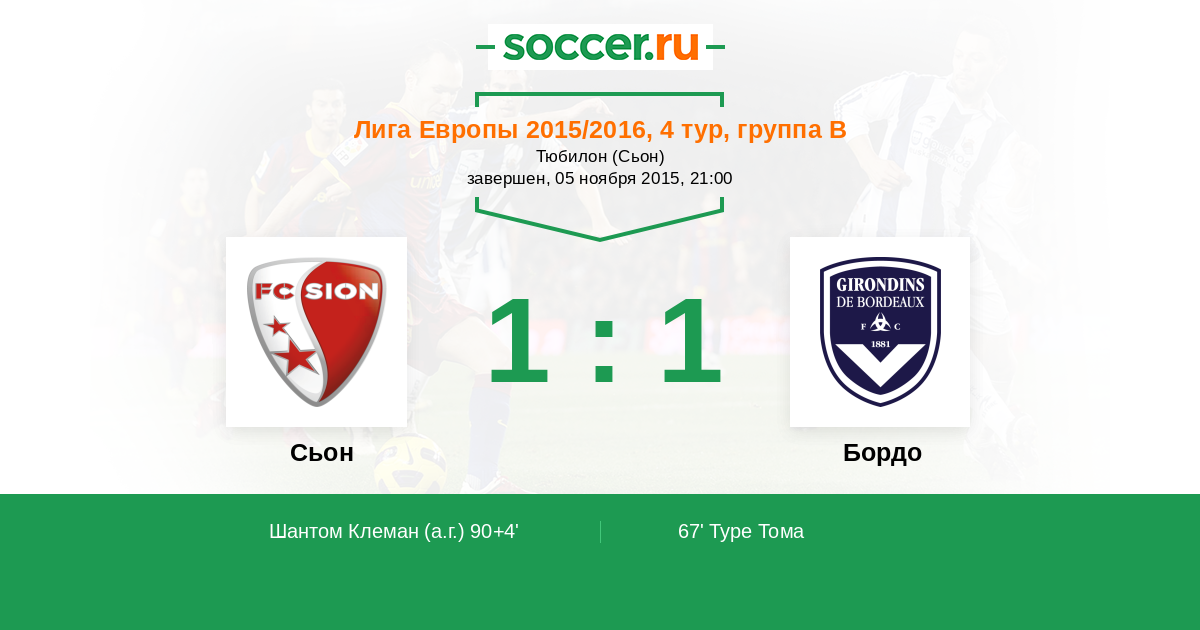 Протокол матча Сьон против Бордо