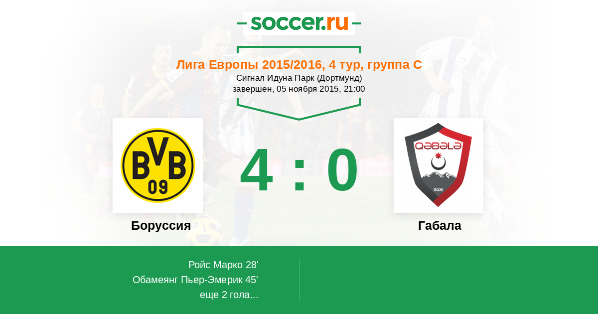 28' (1:0) Ройс Марко (11) (Мхитарян Генрих (10))