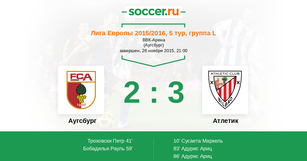 Протокол матча Аугсбург против Атлетик