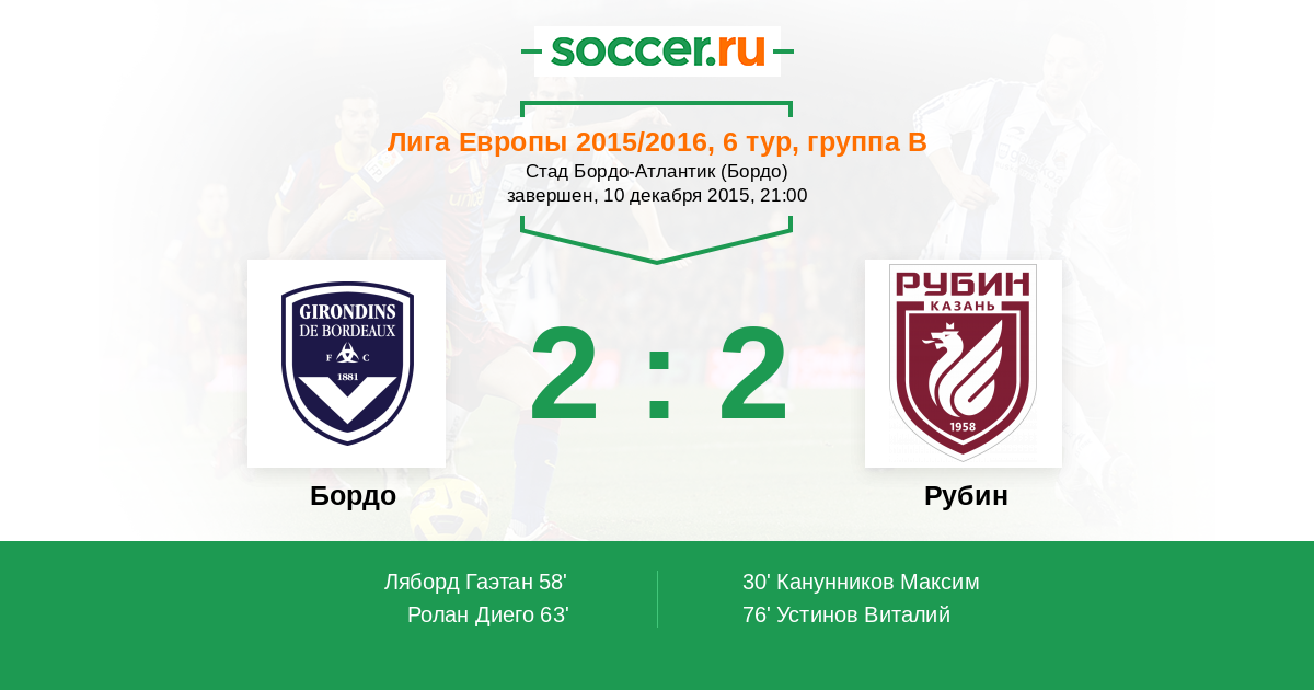 Протокол матча Бордо против Рубин