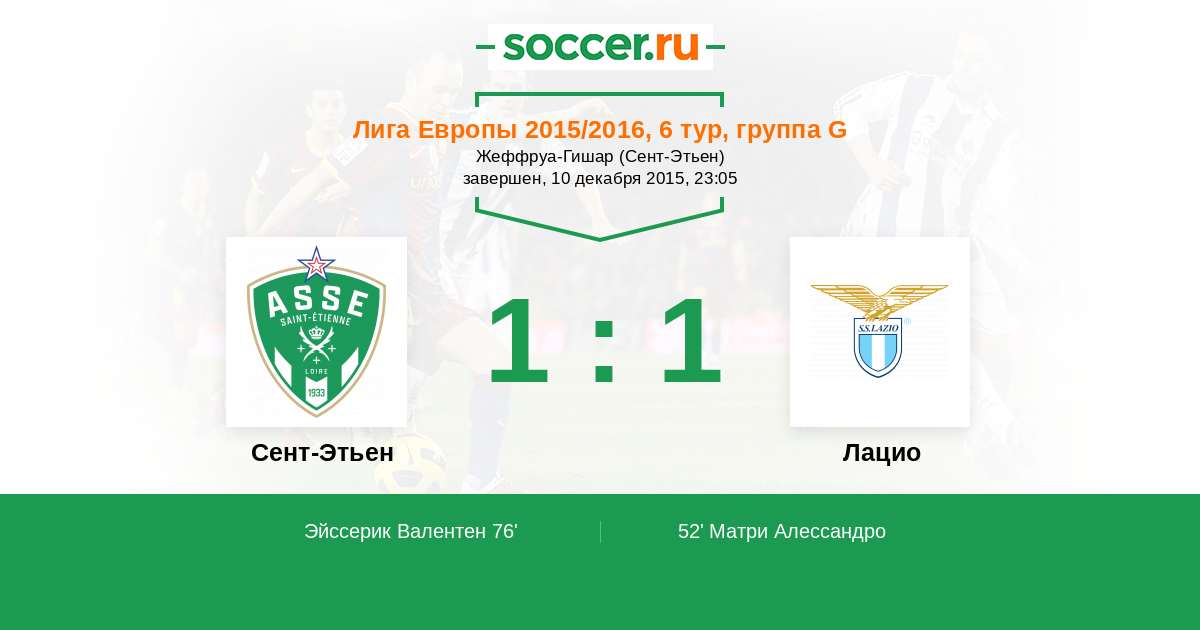 Протокол матча Сент-Этьен против Лацио