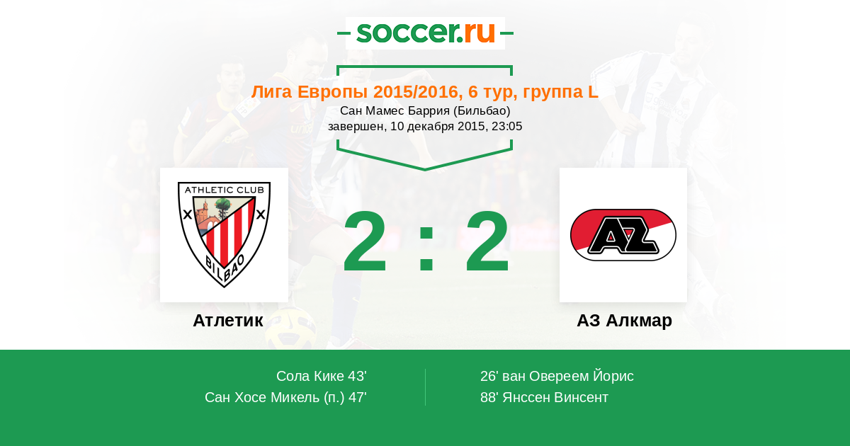 Протокол матча Атлетик против АЗ Алкмар