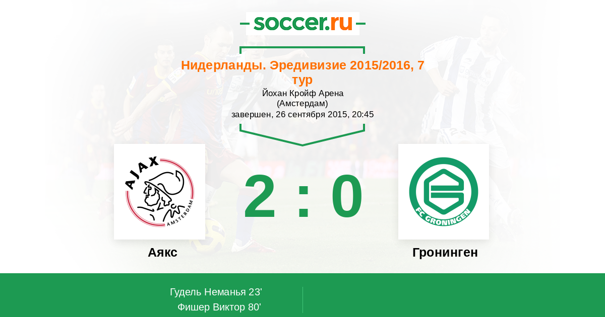 Протокол матча Аякс против Гронинген