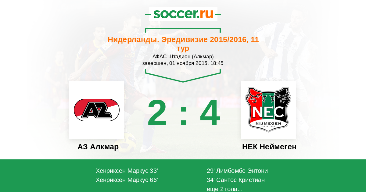 Протокол матча АЗ Алкмар против НЕК Неймеген
