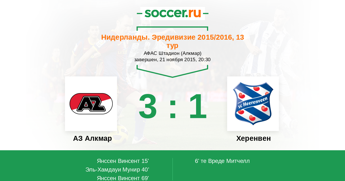 Протокол матча АЗ Алкмар против Херенвен