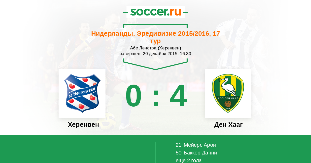 Протокол матча Херенвен против Ден Хааг