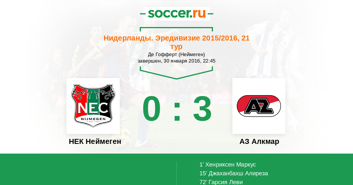 Протокол матча НЕК Неймеген против АЗ Алкмар