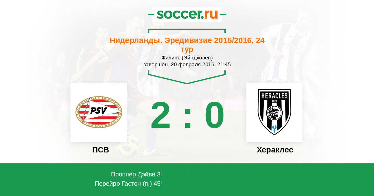 Протокол матча ПСВ против Хераклес