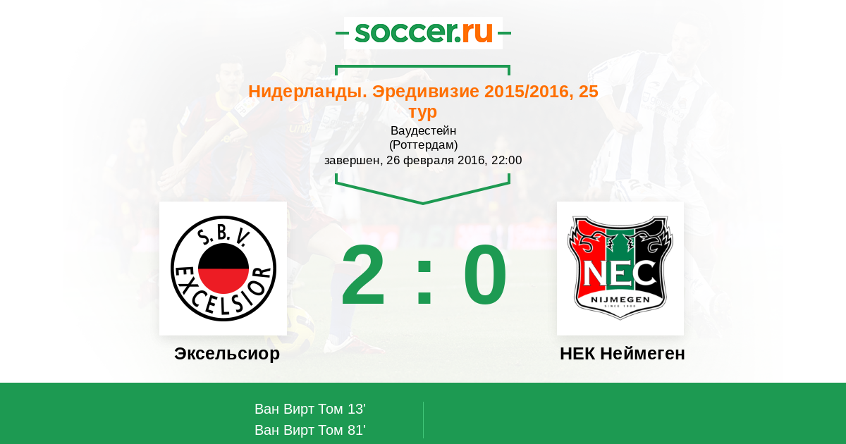 Протокол матча Эксельсиор против НЕК Неймеген