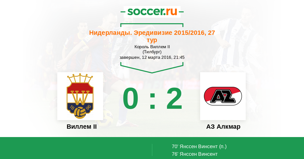 76' (0:2) Янссен Винсент (18) (ван Овереем Йорис (8))
