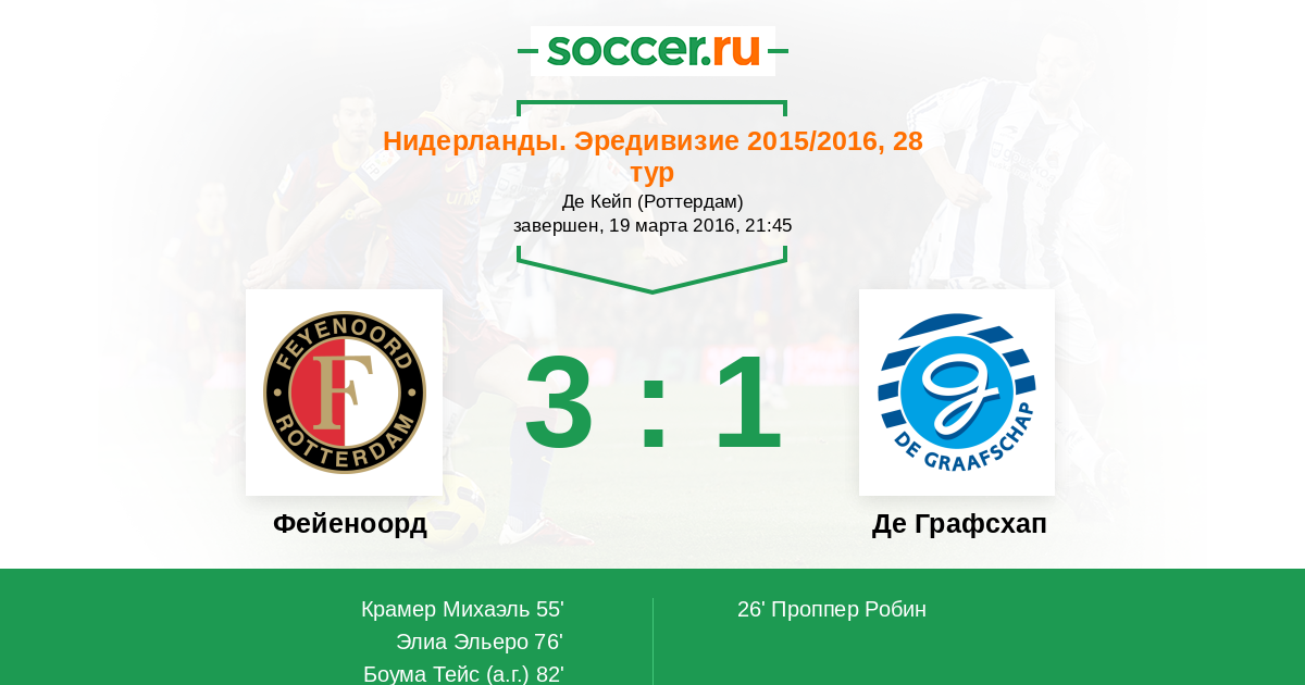 Протокол матча Фейеноорд против Де Графсхап
