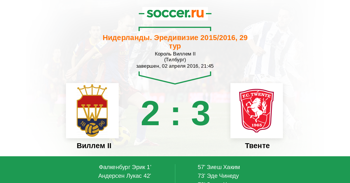Протокол матча Виллем II против Твенте