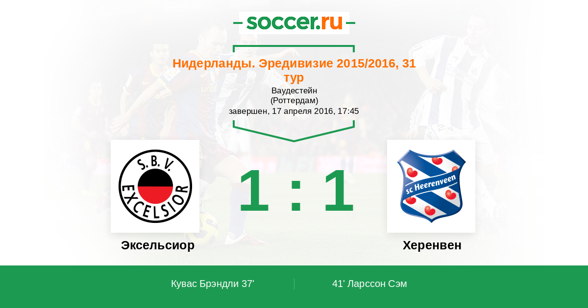 Протокол матча Эксельсиор против Херенвен