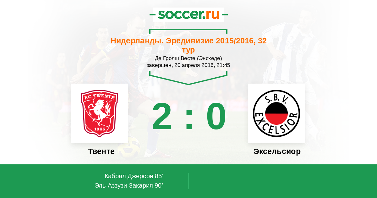 Протокол матча Твенте против Эксельсиор