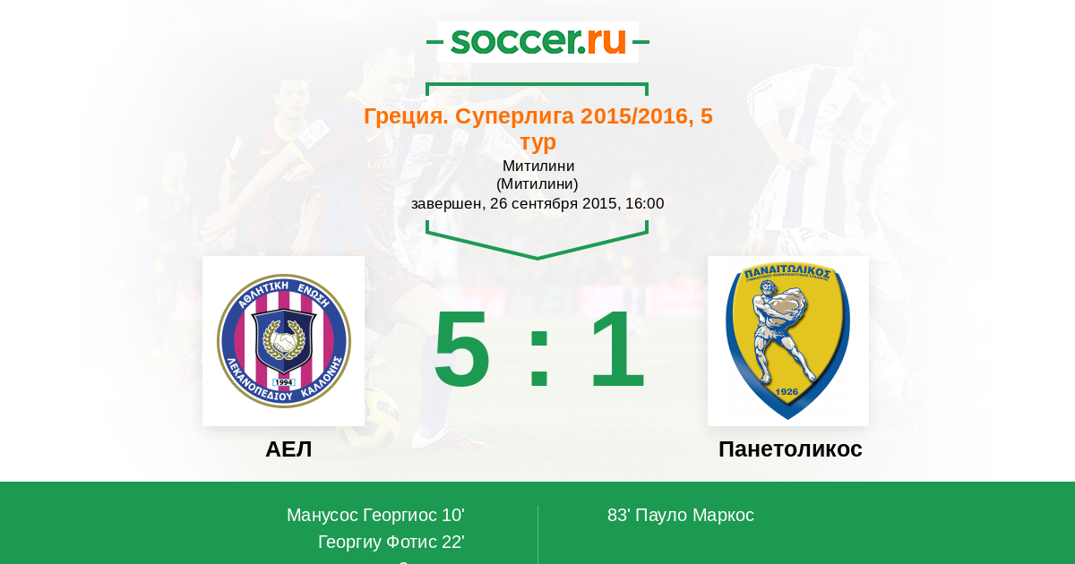 Протокол матча АЕЛ против Панетоликос