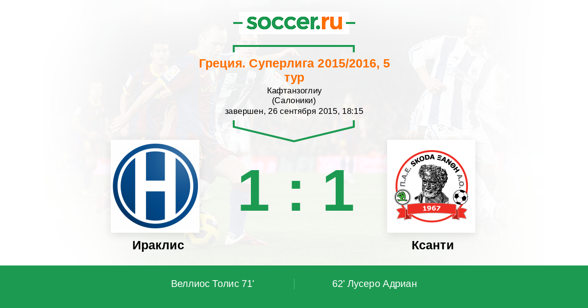 Протокол матча Ираклис против Ксанти