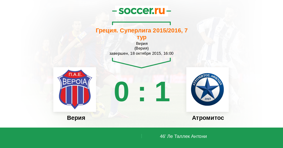 Протокол матча Верия против Атромитос