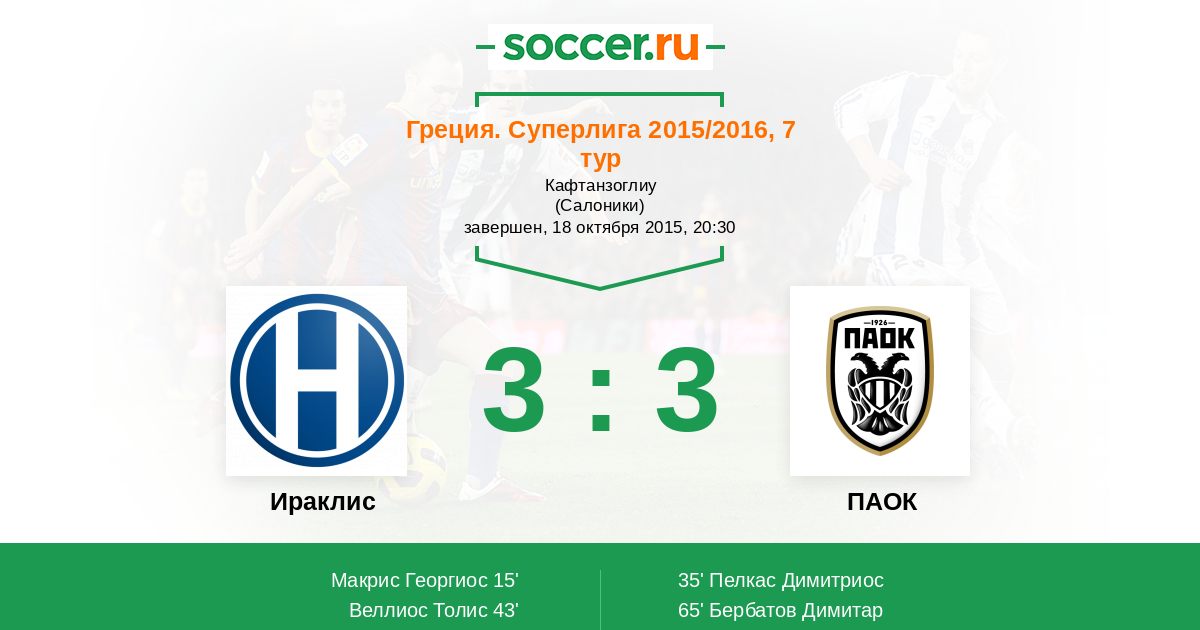 Протокол матча Ираклис против ПАОК